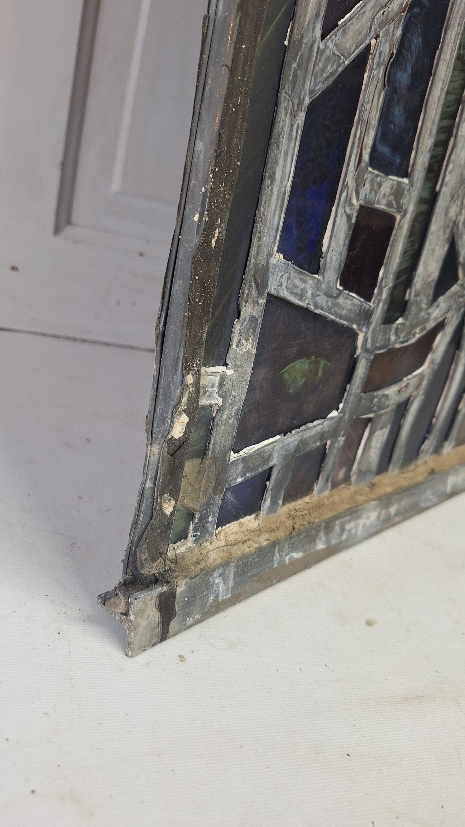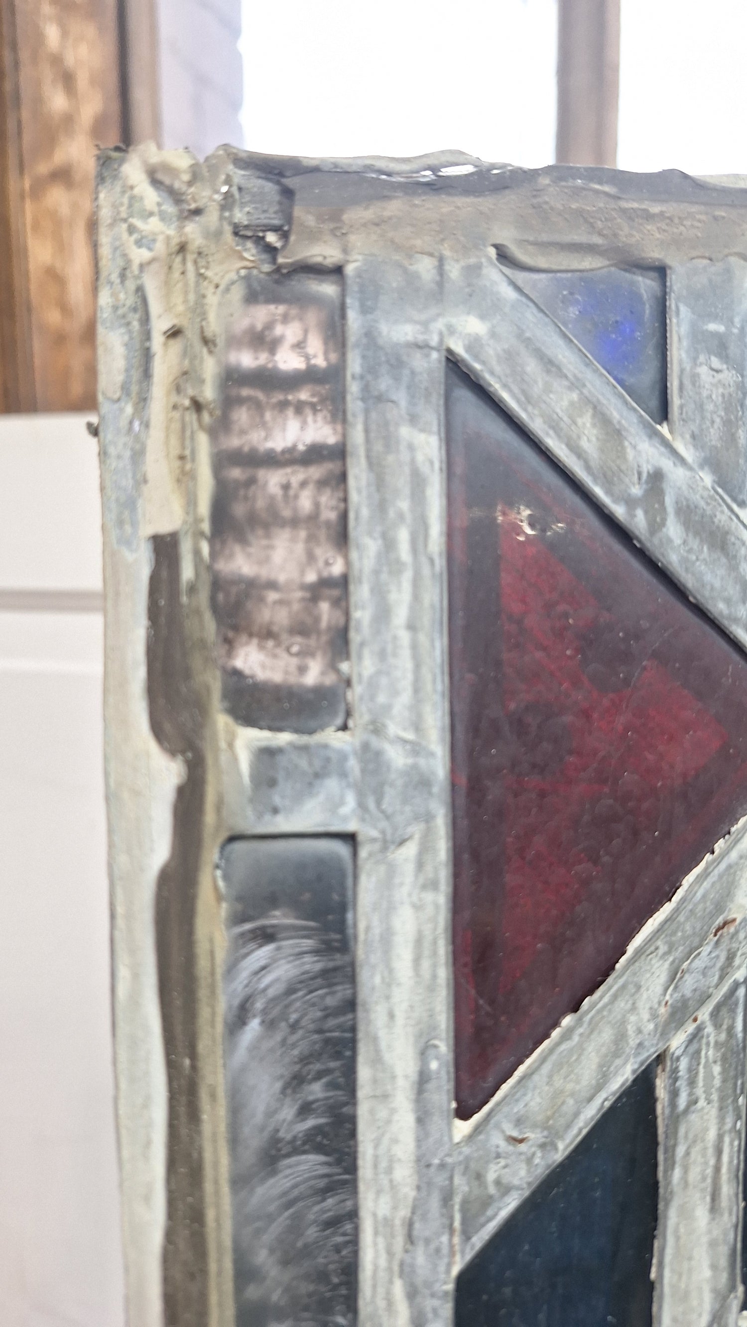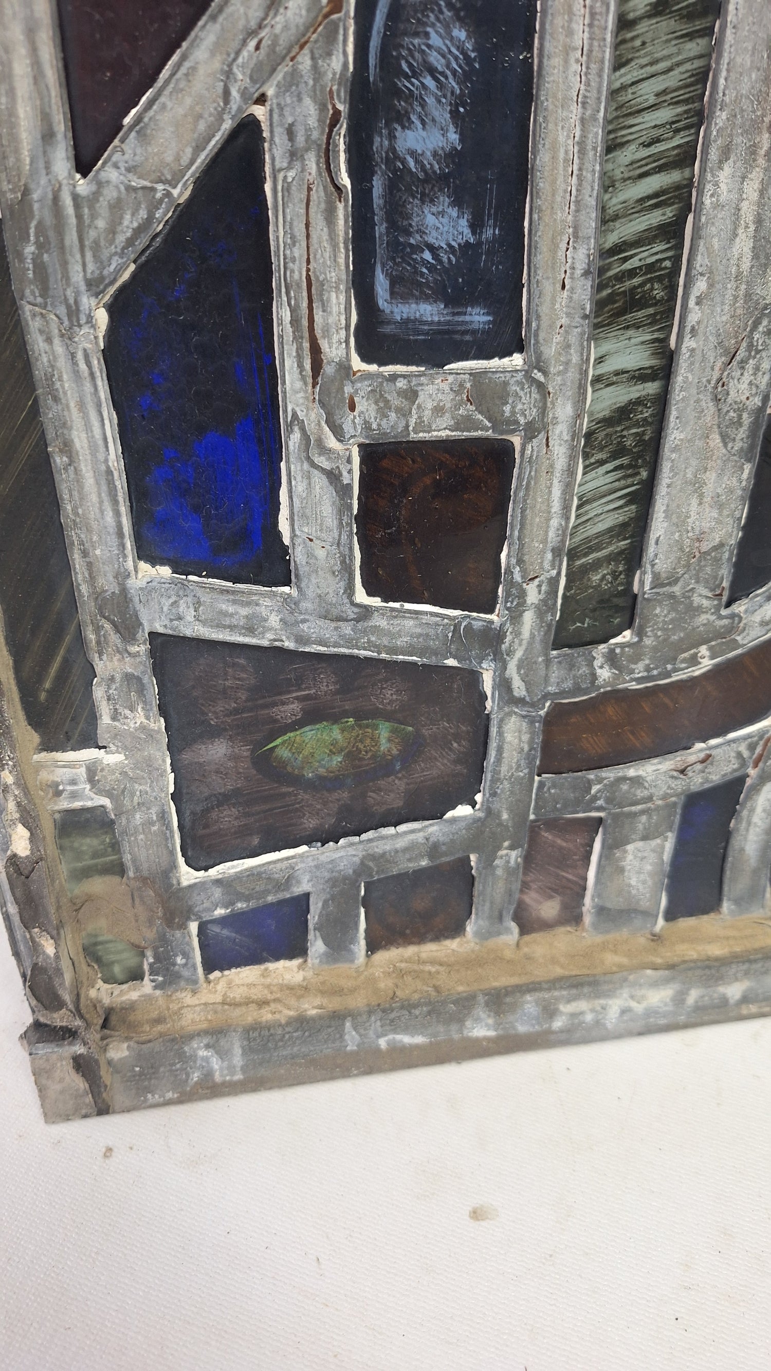 Square Gothic Style Antique Stained Glass, Vintage Church Windows