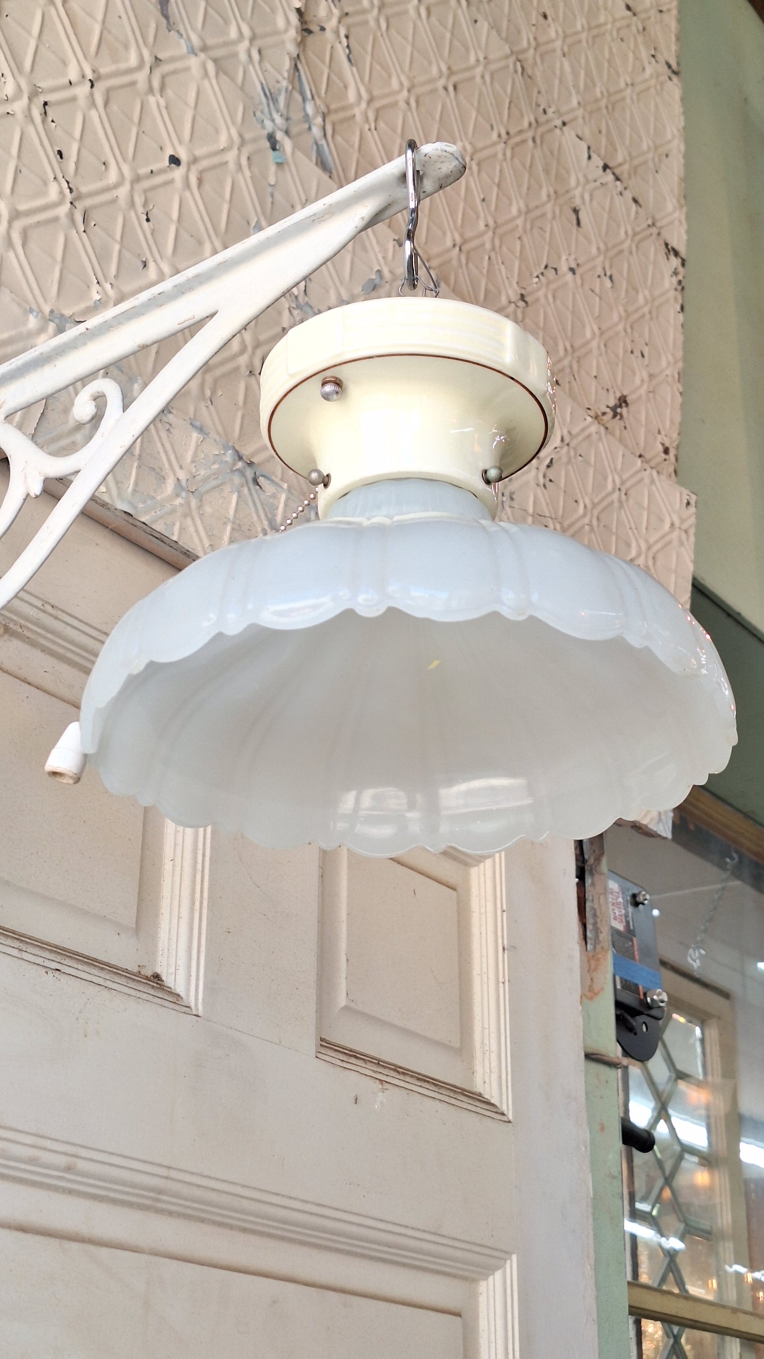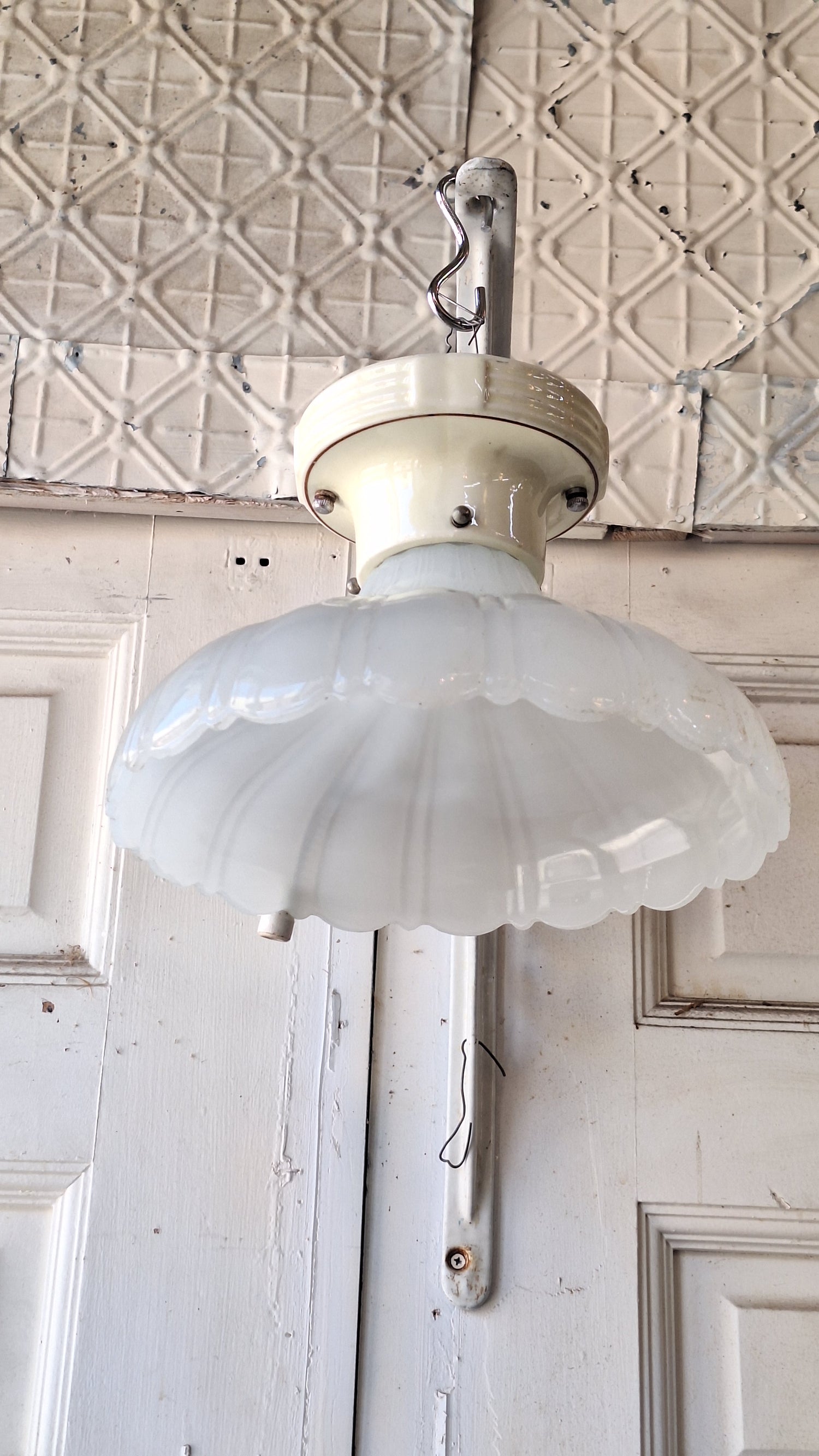 Scalloped Clam Broth Light Fixture, Vintage Pull Chain Fixture