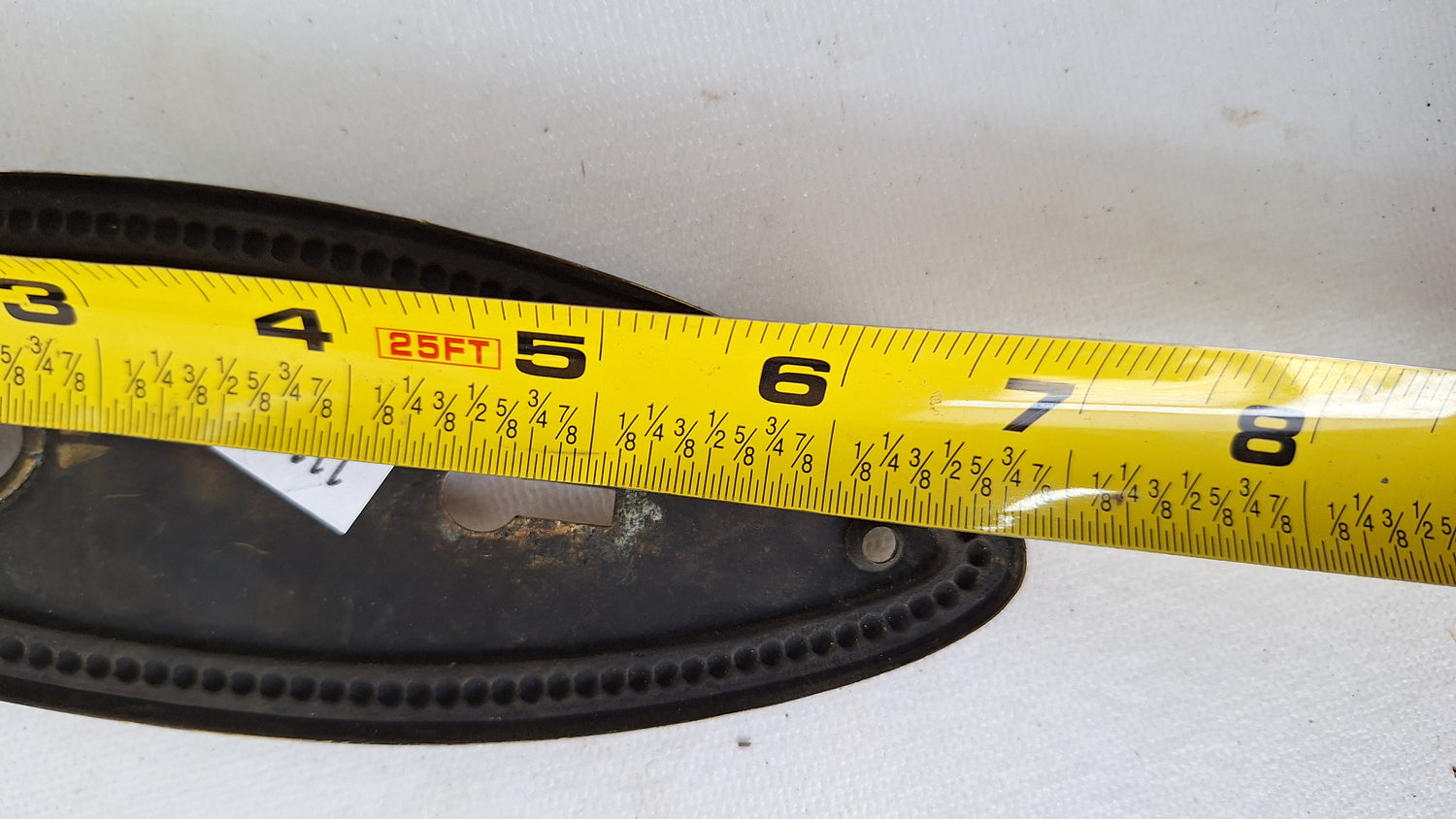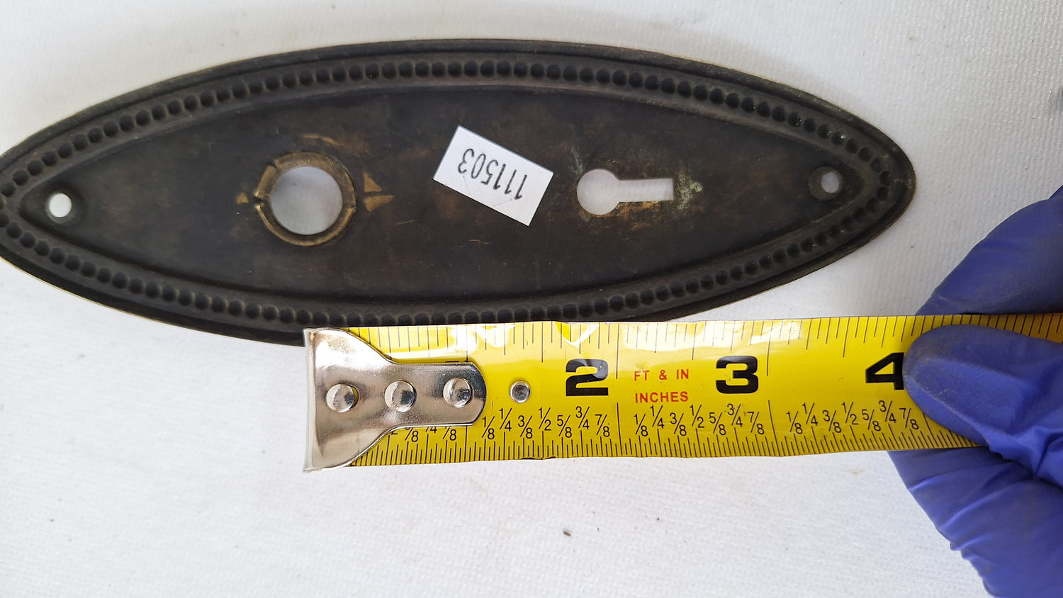 Set of Beaded Edge Doorknobs and Plates, Antique Brass Door Hardware Set