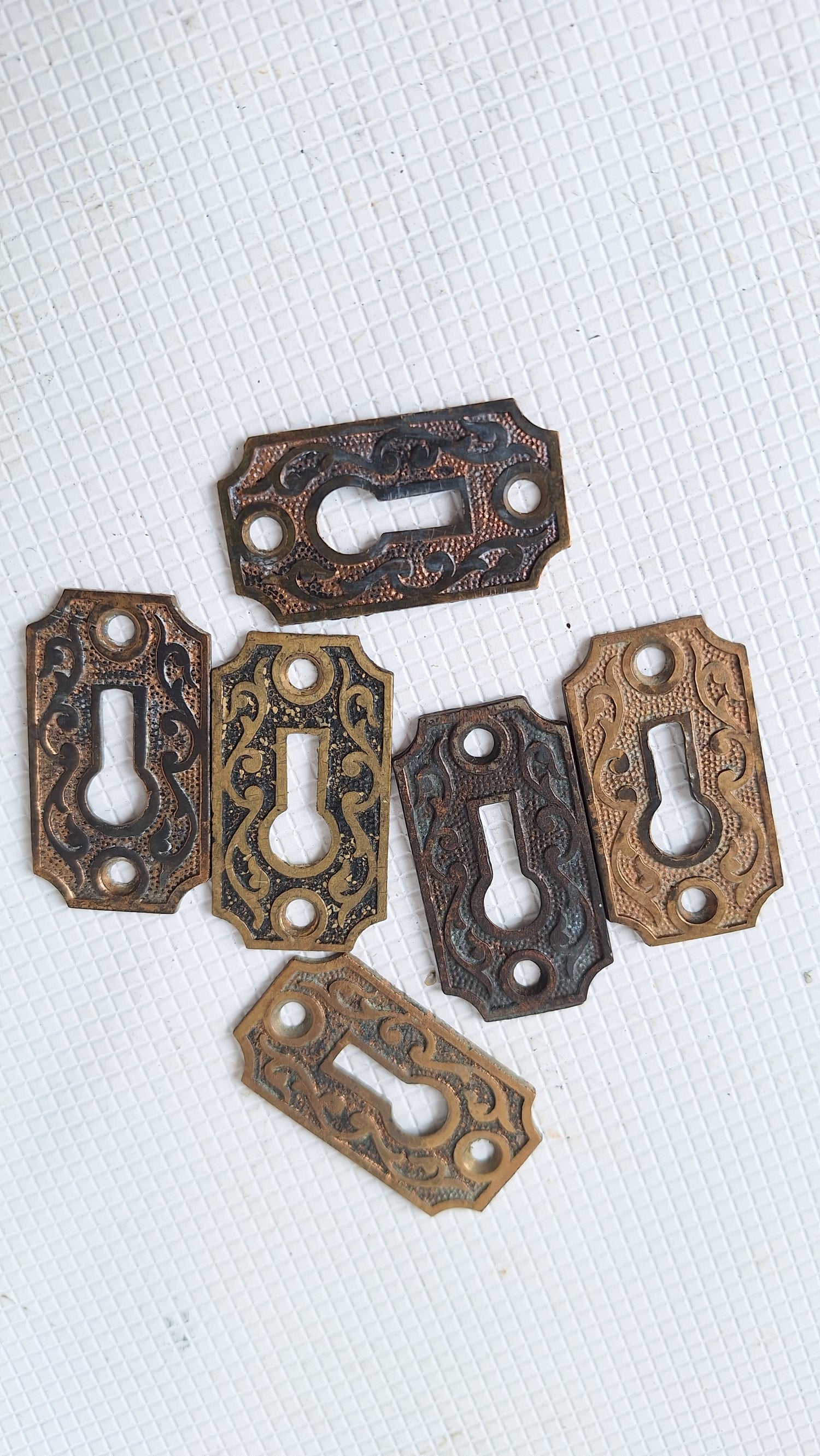 One Victorian Escutcheon, Bronze Key Hole Cover Plate, Fancy Scroll Design 041805
