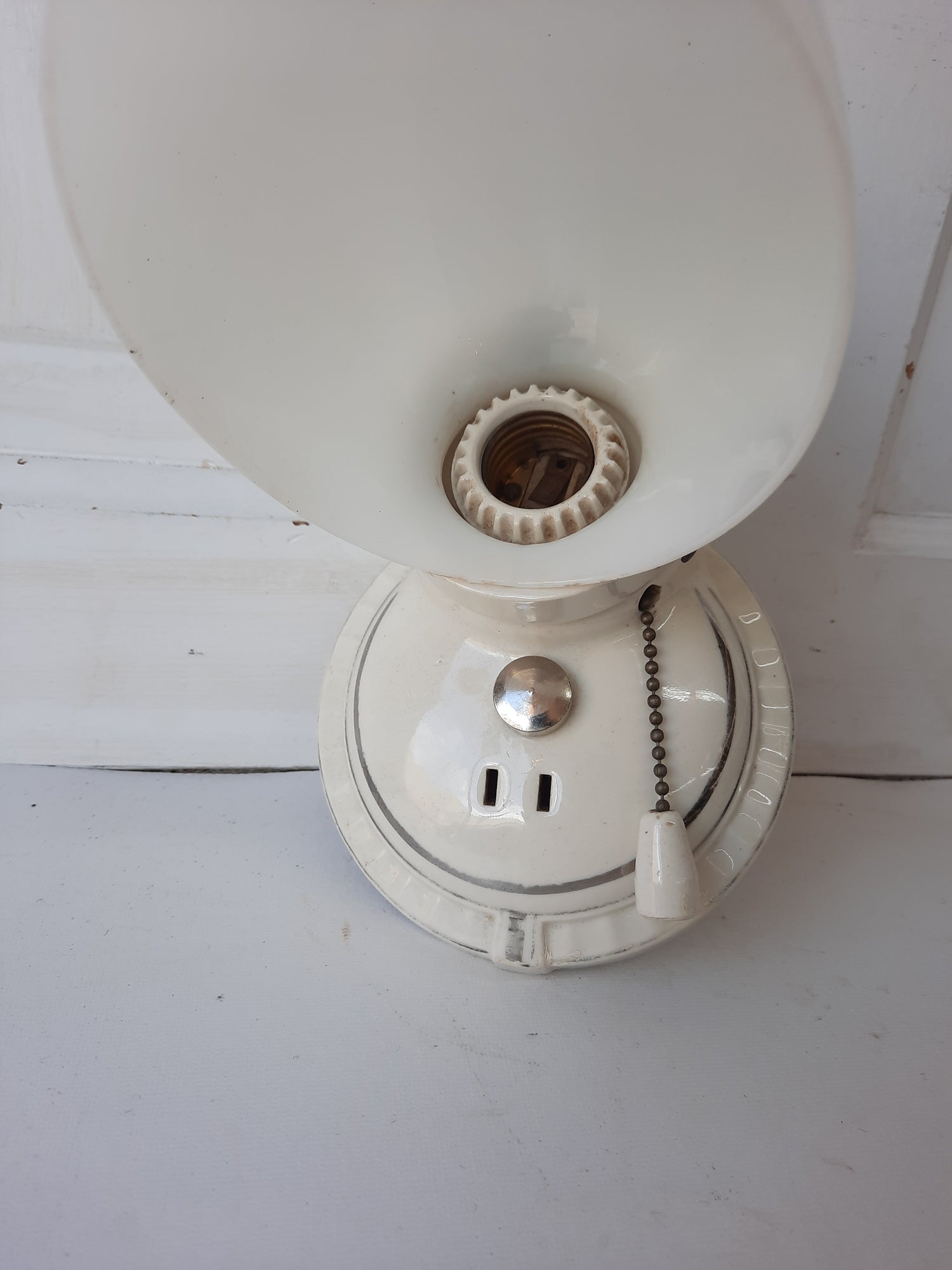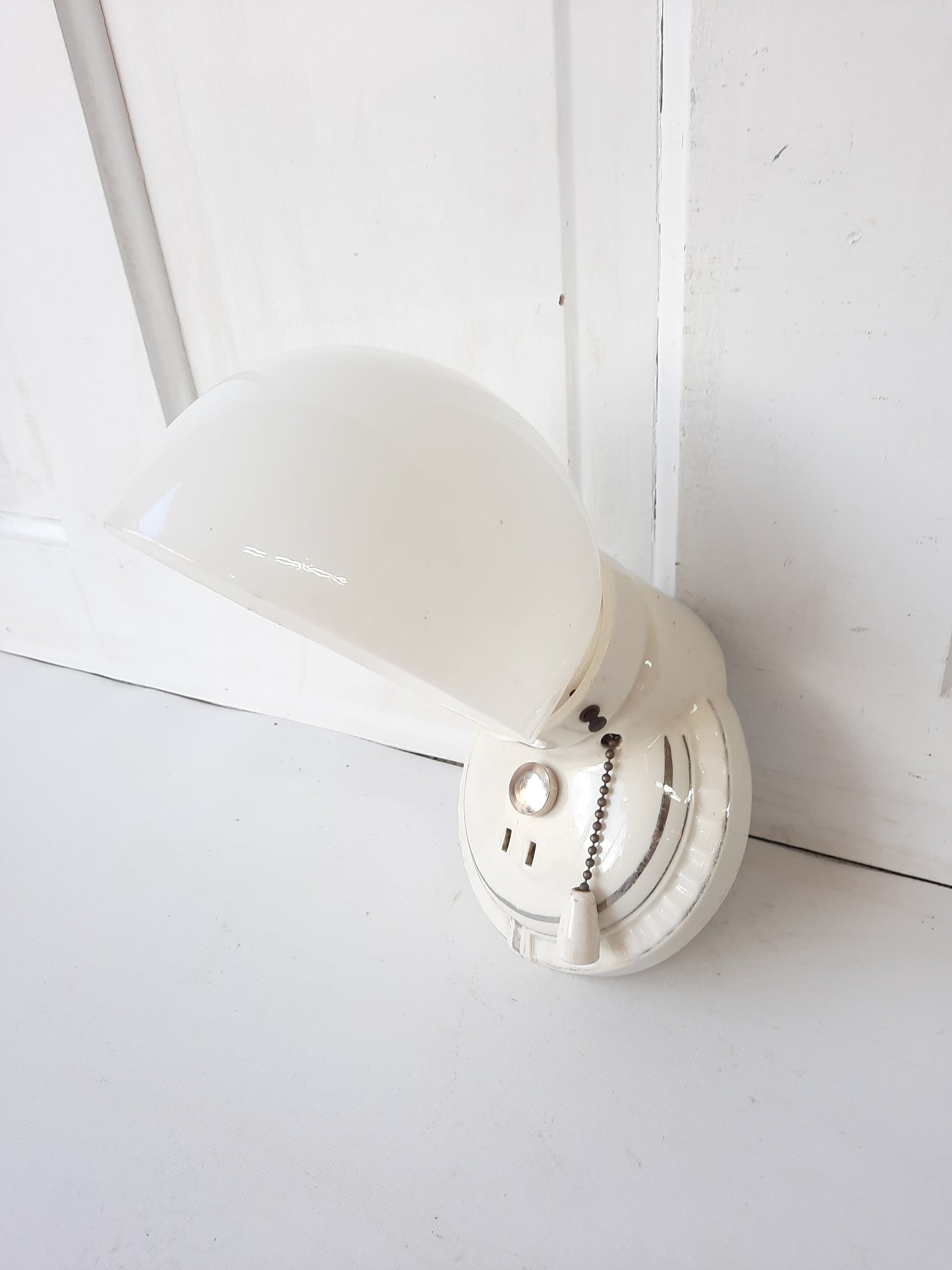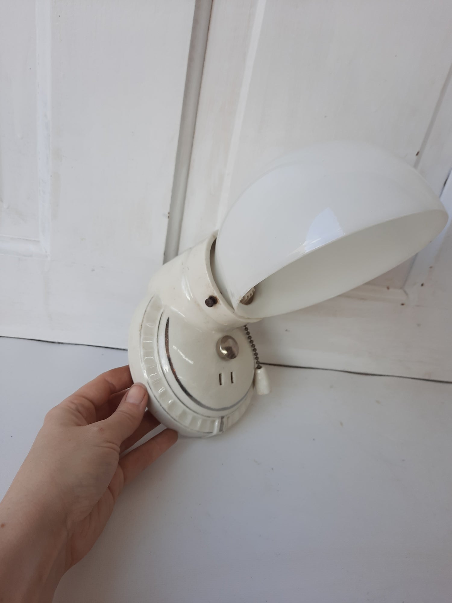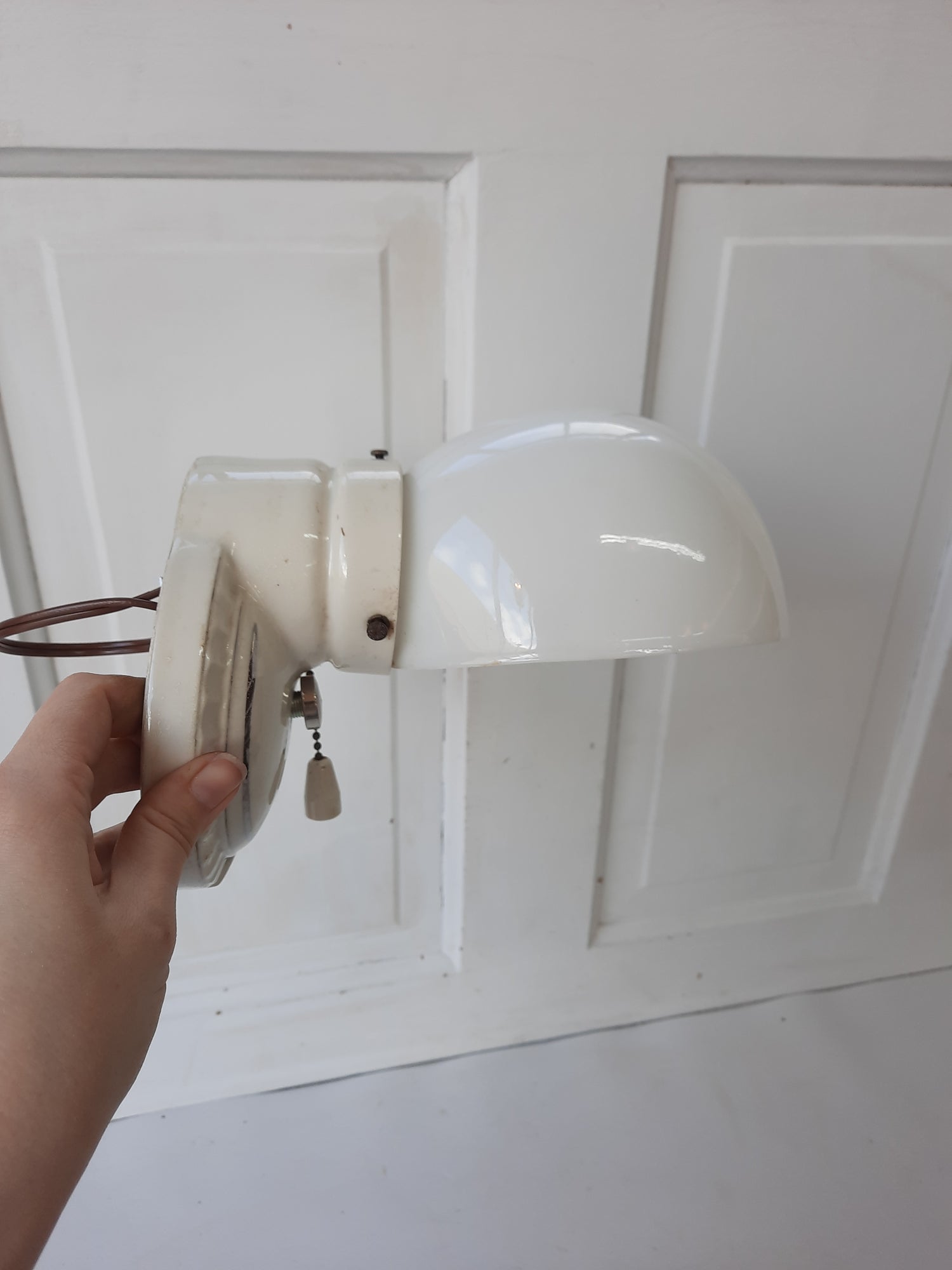 Single Vintage Porcelain Bathroom Sconce, Pull Chain Ceramic Bathroom Vanity Light, White Porcelain Shell Light 013116