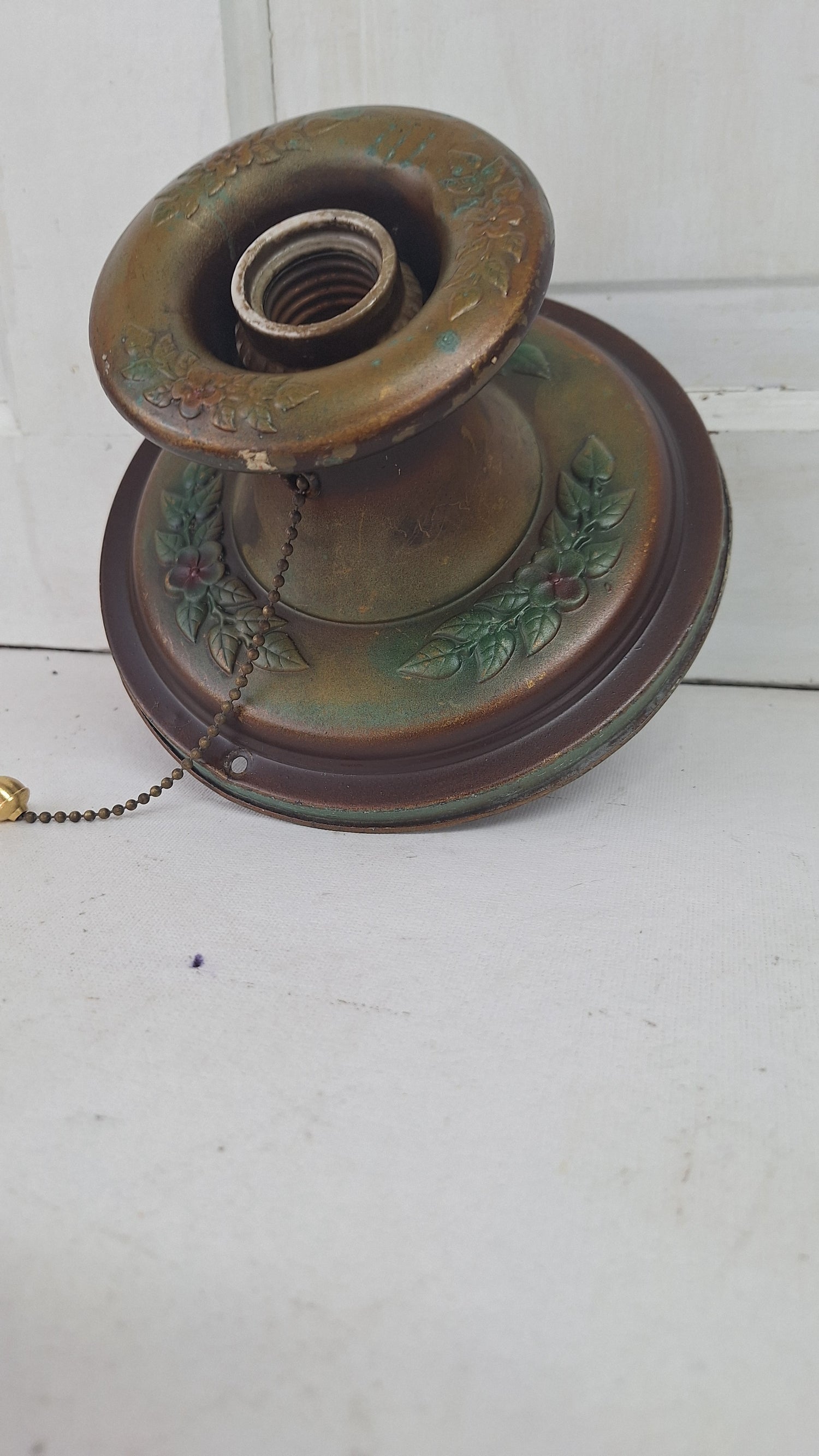 Stamped Brass Flush Mount Light: Rewired Antique Fixture with Rose Detailing