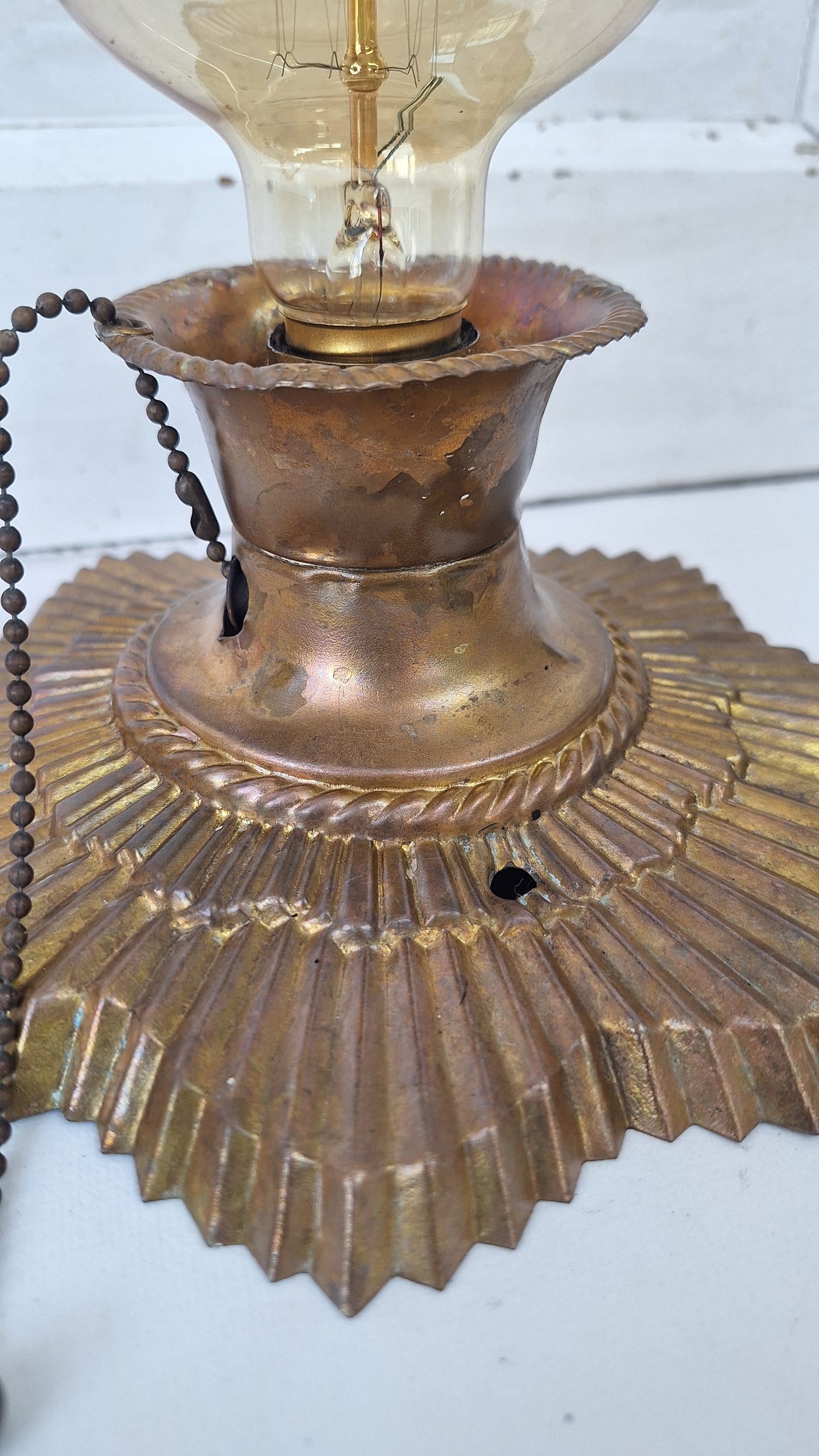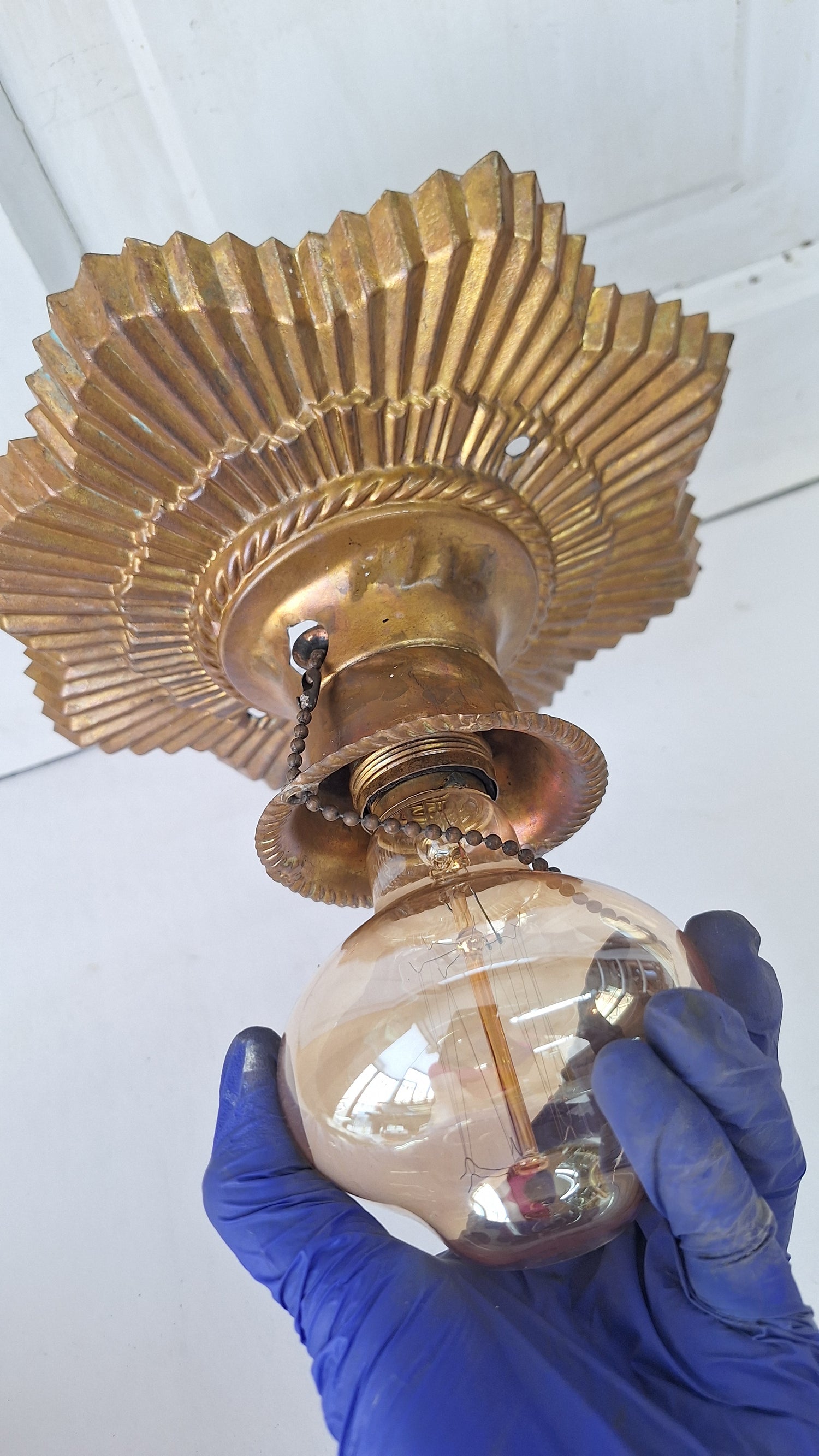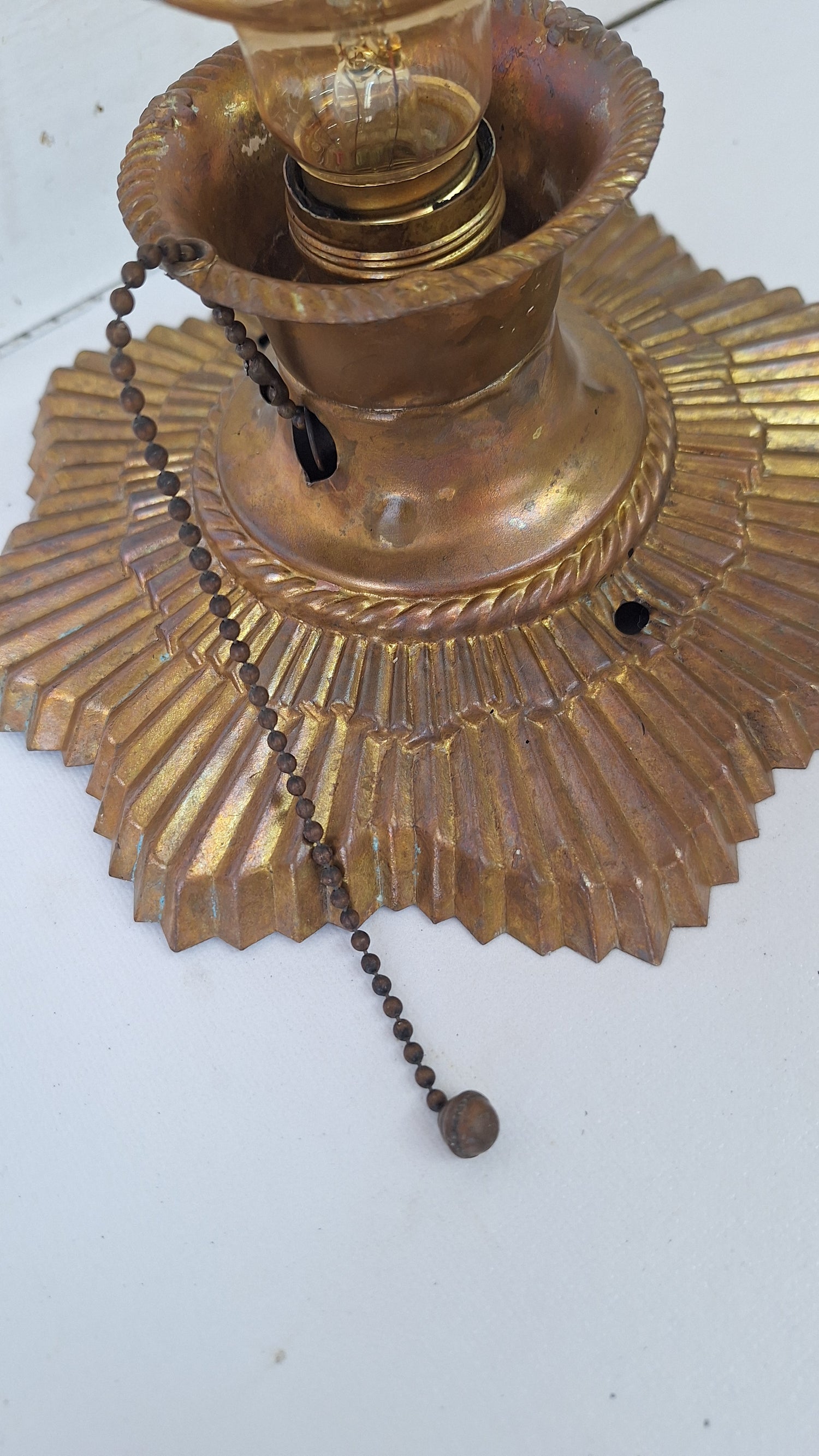 Sunburst Vintage Pull Chain Light Fixture: Small Brass Star Design Ceiling Light