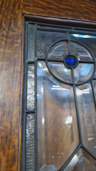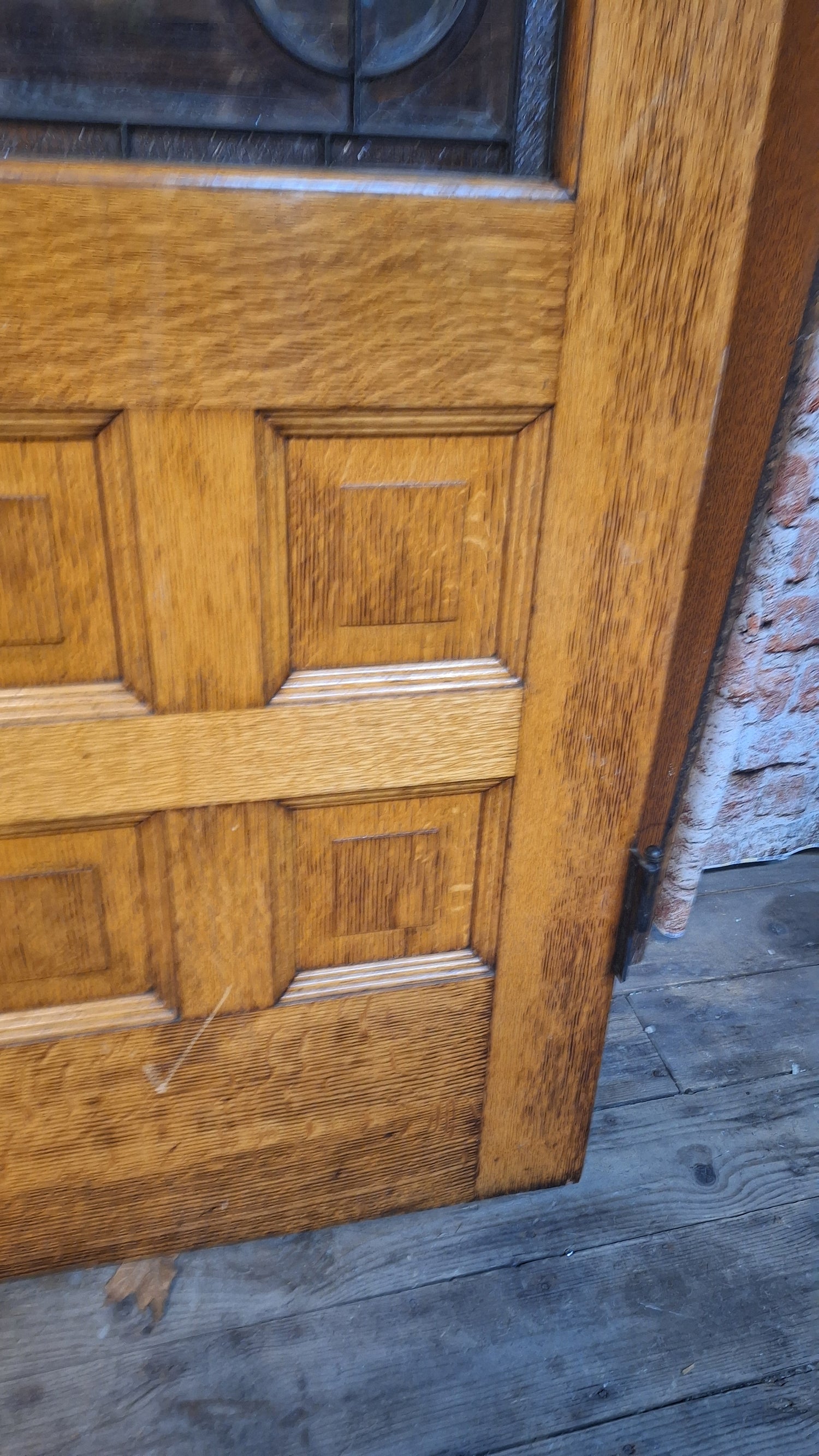 Victorian Era Oak and Stained Glass Entry Door, 38" Antique Front Door