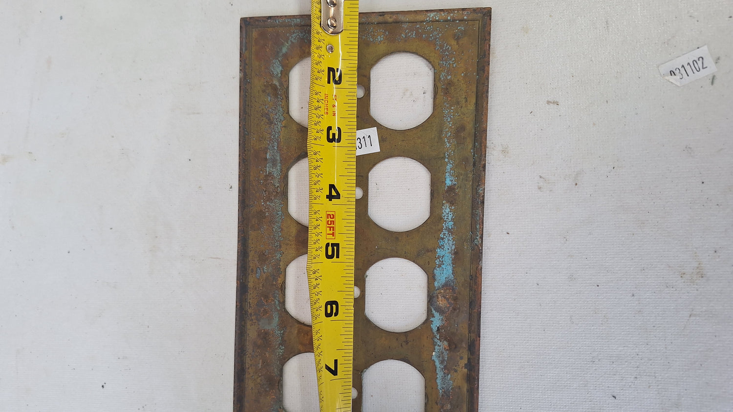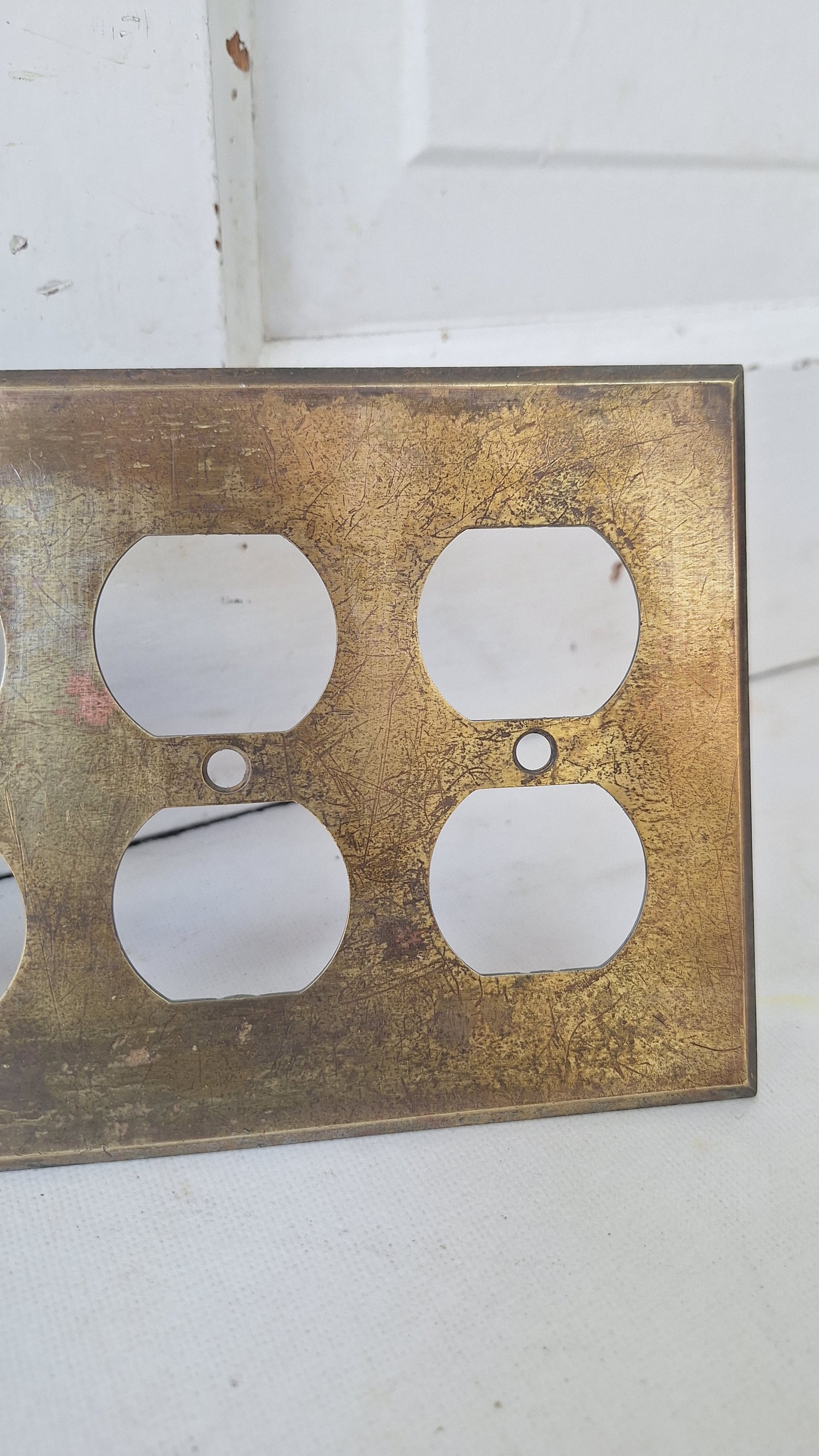 Vintage Brass Four Gang Outlet Cover, Eight Outlet Plate