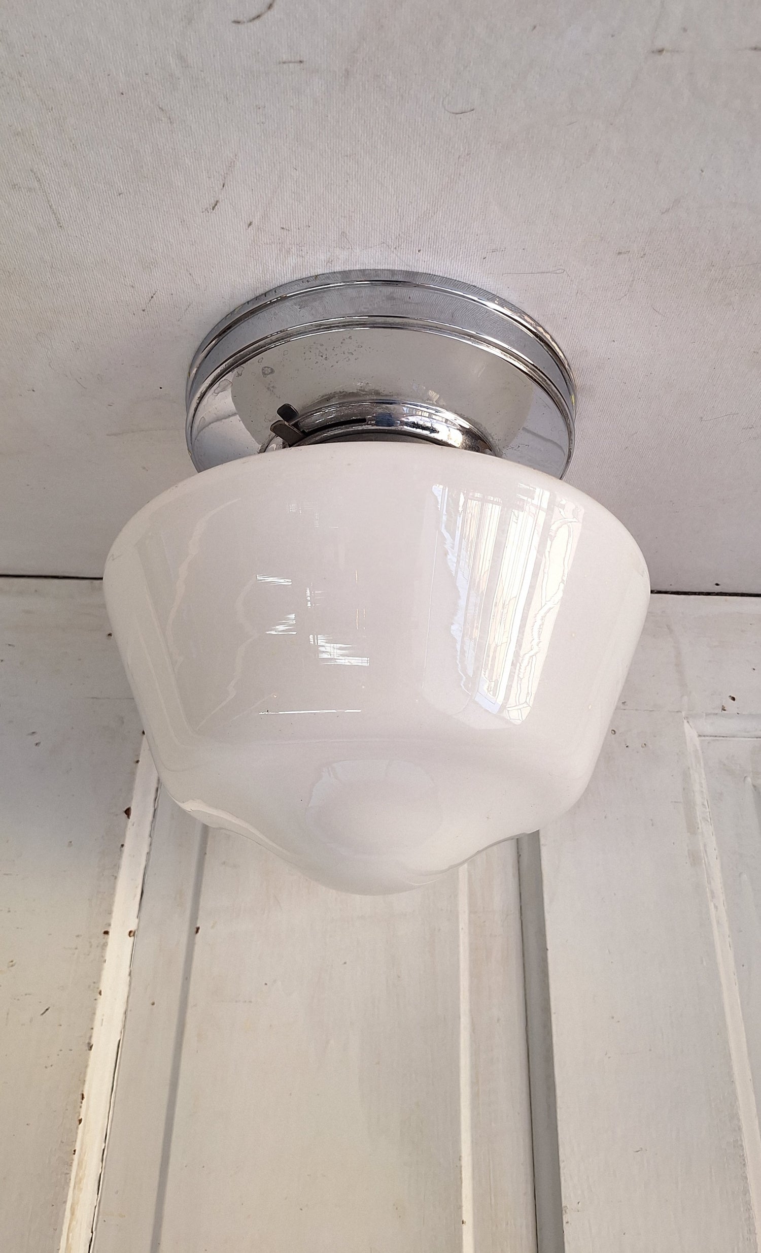 Vintage Chrome & Milk Glass Schoolhouse Light - Architectural Salvage