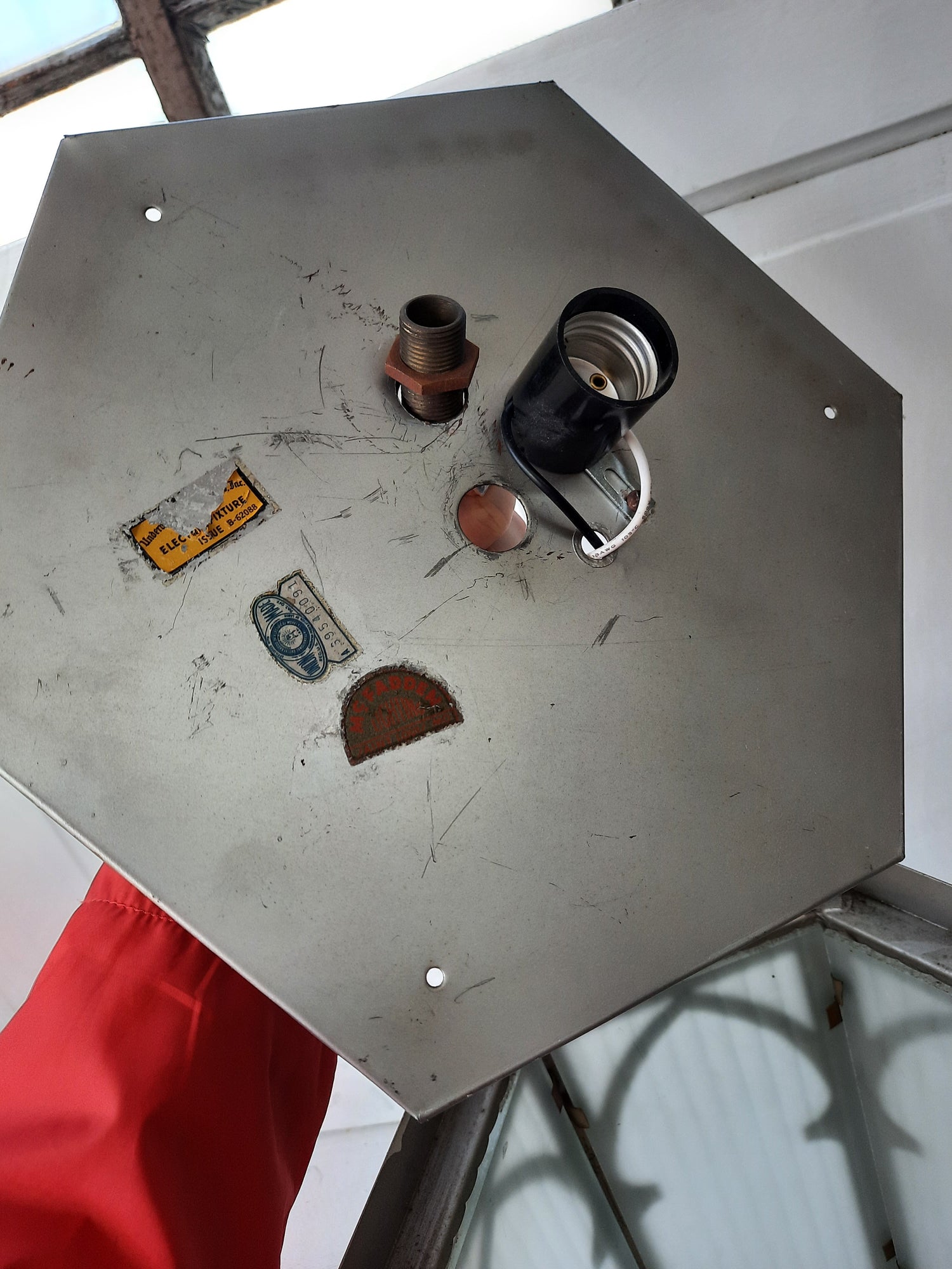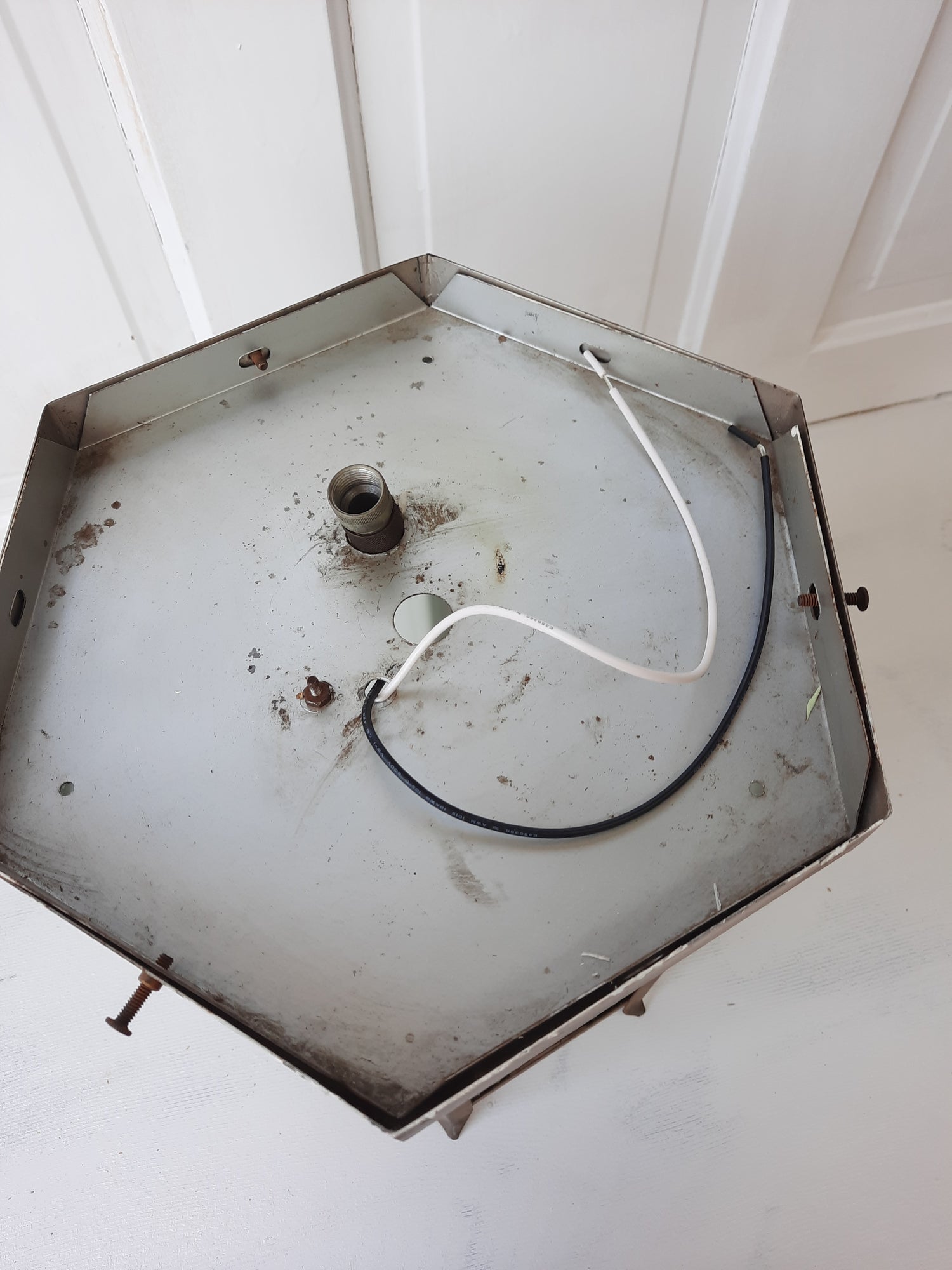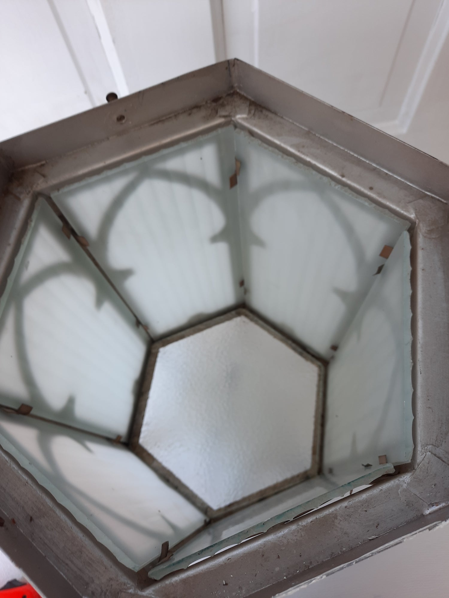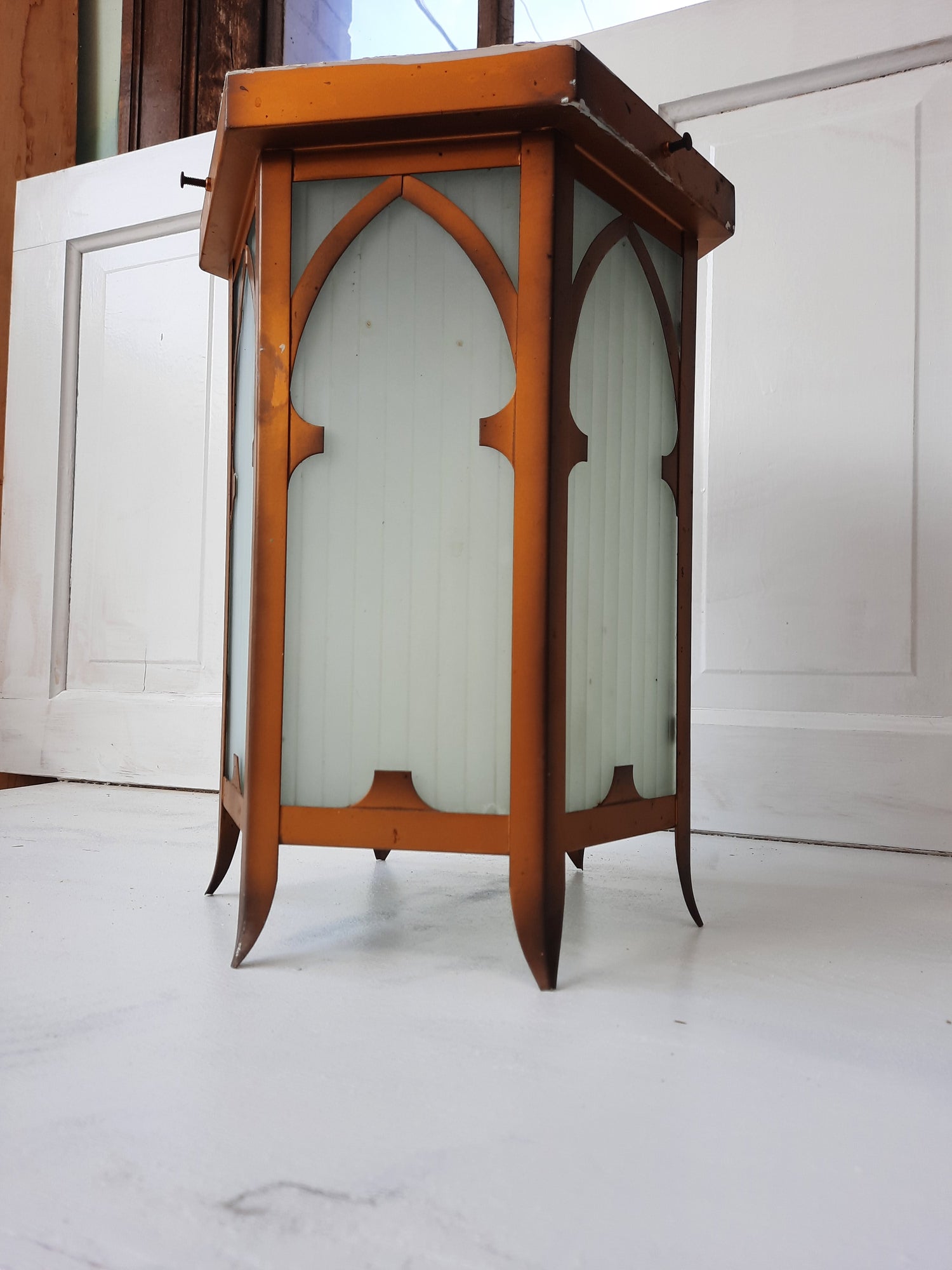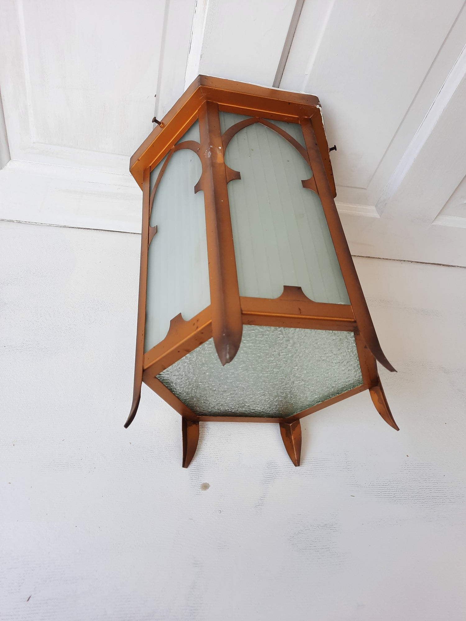 Vintage Gold and Glass Hexagonal Church Light, Flush Mount Lantern Style Ceiling Light