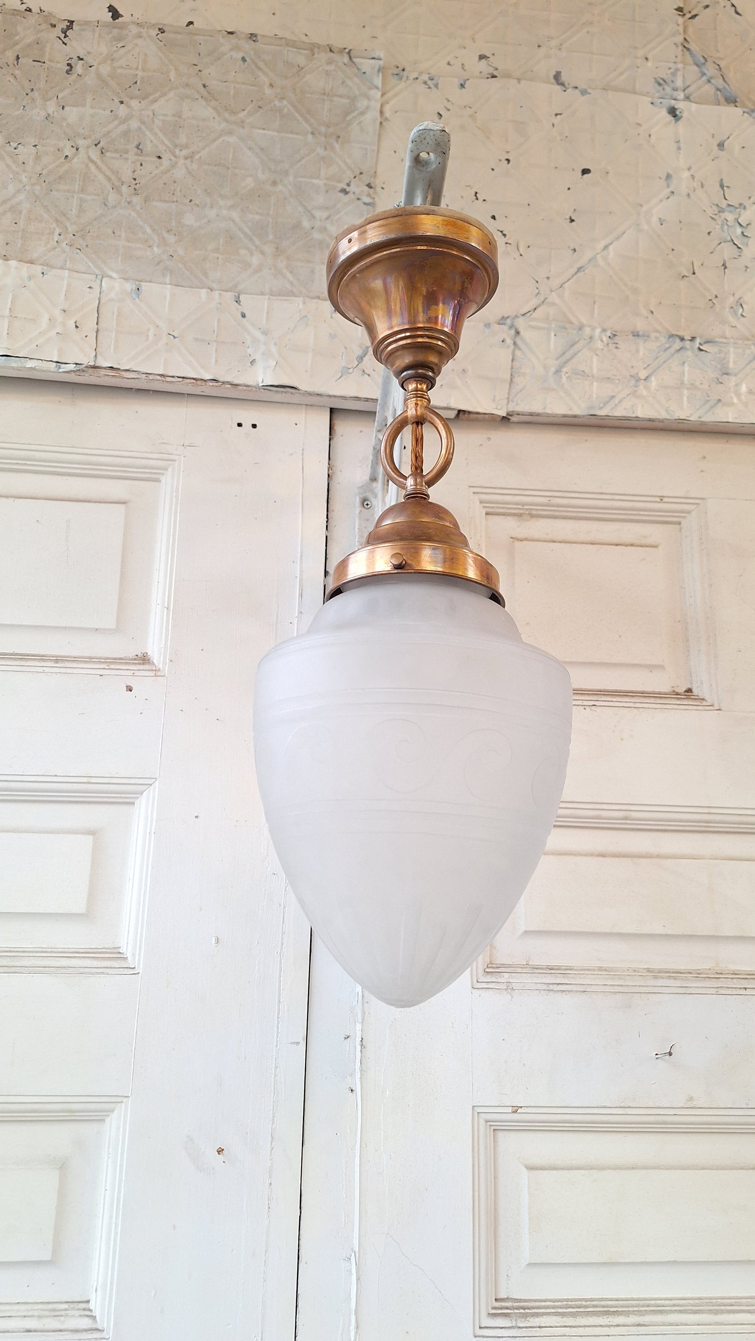 Wave Design Antique Frosted Glass Glbe Pendant Light, Neoclassical Vintage Greek Revival Light, Vintage White and Gold Pendant Light 080303