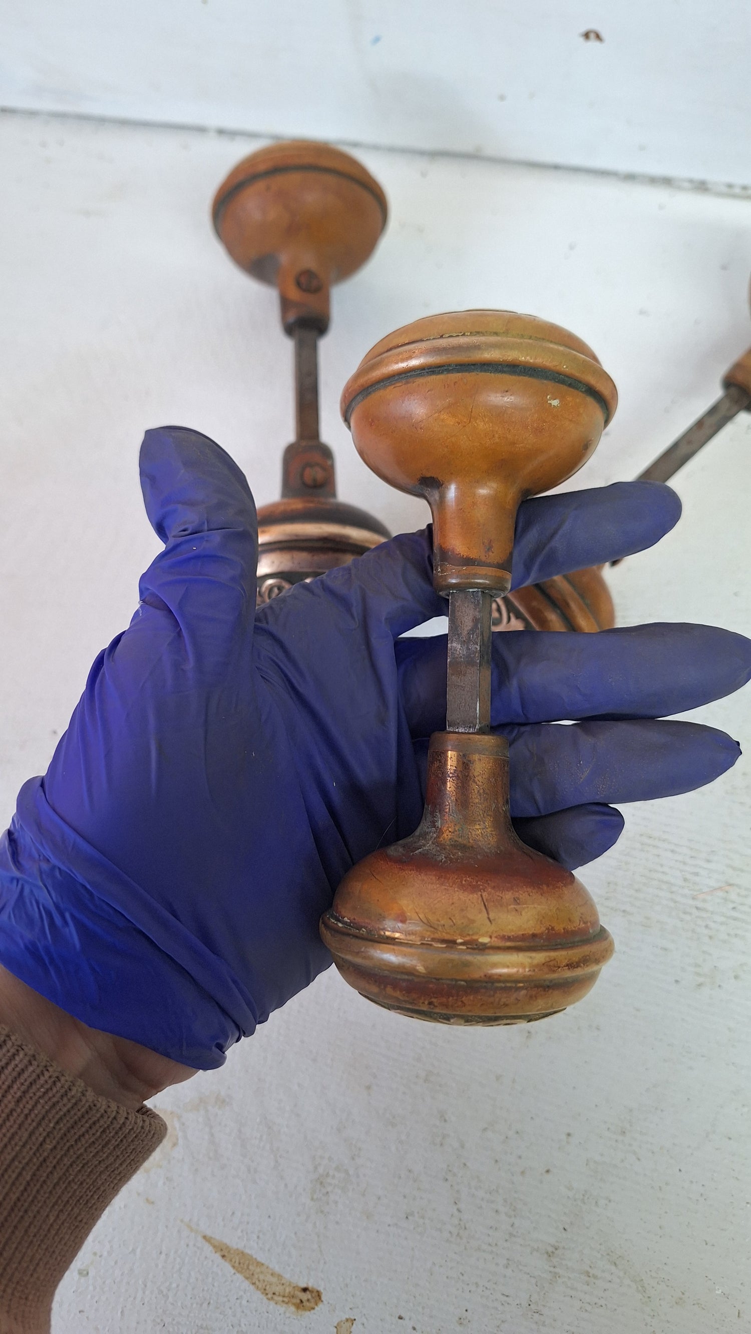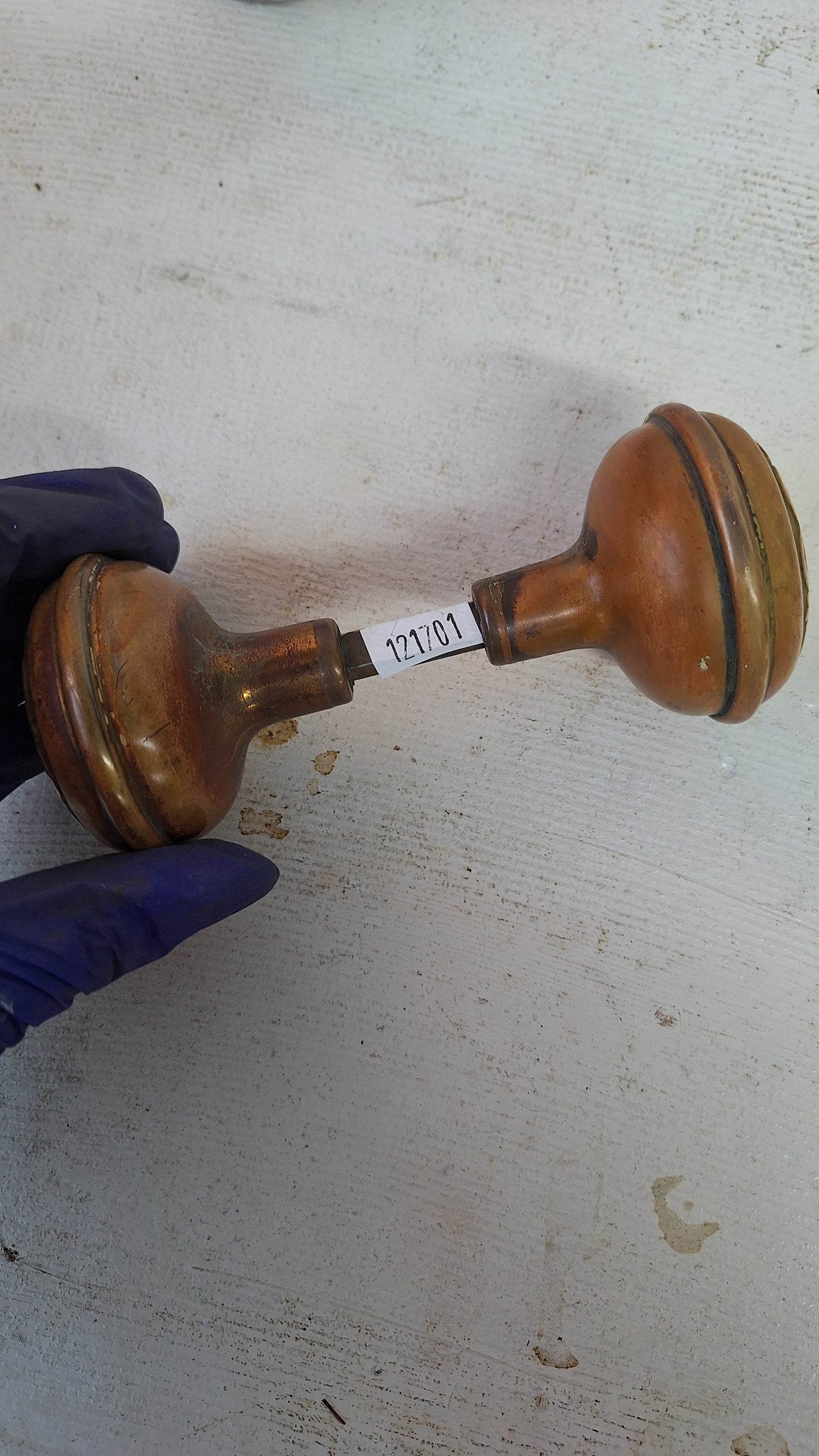 Wrought Bronze Doorknob Set, Antique Stamped Design Door Knob Pair