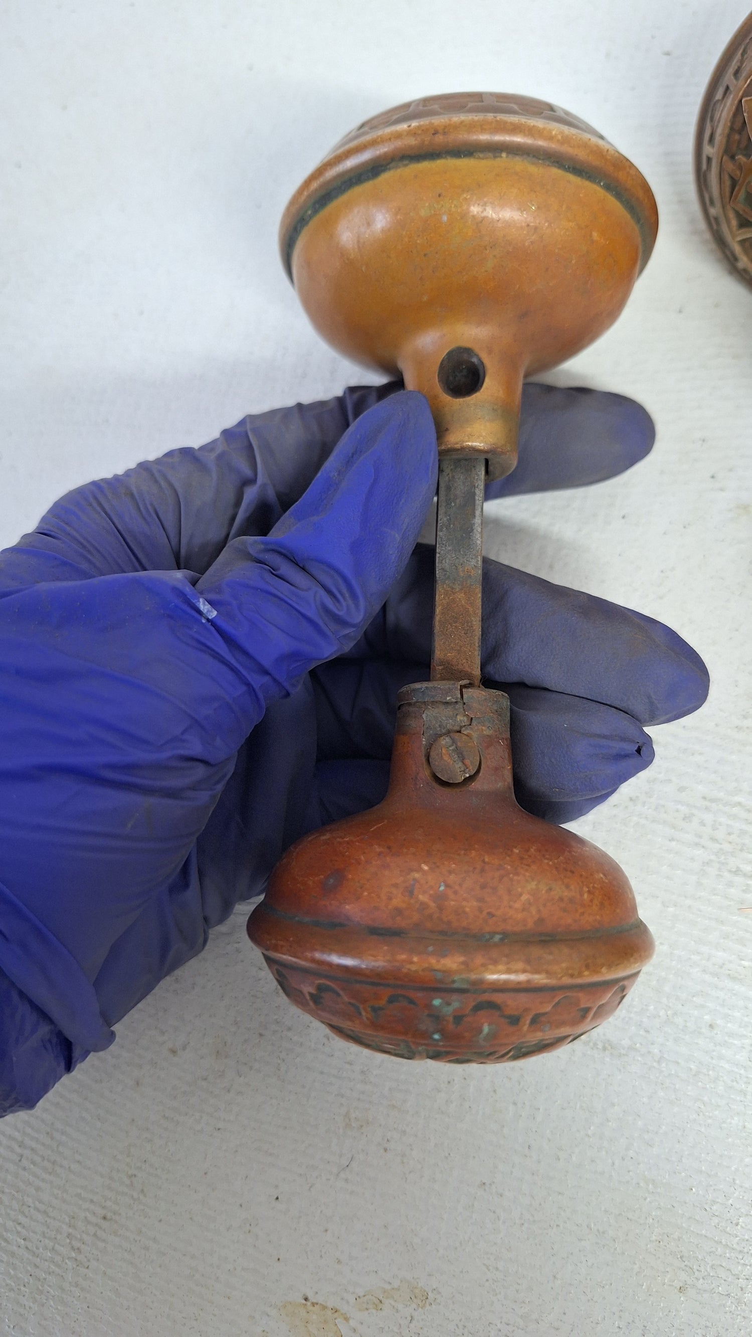 Pair of Wrought Bronze Norwalk Doorknobs, Two Ornate Bronze Doorknobs